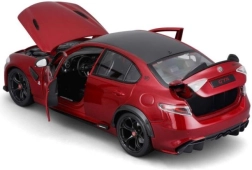 Dank der öffnenden Elemente können Sie in den Innenraum und den Motorraum blicken. Gummireifen mit markanten Bremssätteln unterstreichen den sportlichen Charakter. Das Quadrifoglio-Emblem – das grüne vierblättrige Kleeblatt – verweist auf Rennsport-DNA und Spitzenleistungen.