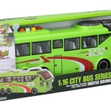 Dieser detailreich gestaltete Bus mit einer Länge von 27 cm bietet Kindern viel Spaß und fördert die Motorik. Auf dem Dach befinden sich Tasten für Licht- und Soundeffekte (Motor, Hupe, Rückwärtsfahren, Türöffnen). Dank des Schwungradantriebs fährt der Bus nach einem leichten Anschubsen problemlos los.