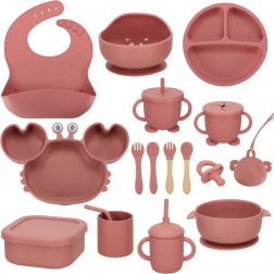 Silikon-Küchengeschirr-Set für Kinder Krabbe 19 Stk. dunkelrosa