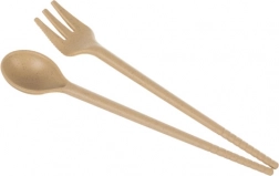 Ein Set aus umweltfreundlichem Besteck, bestehend aus einem Löffel und einer Gabel mit geriffelter Kante, ist inklusive.