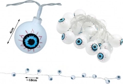 Schaffen Sie eine mystische Halloween-Atmosphäre mit einer originellen Girlande in Augenform. Zehn LEDs spenden ein warmes, angenehmes Licht – ideal für Fenster, Türen, den Kamin oder die Partydeko. Dank Batteriebetrieb lässt sie sich nahezu überall platzieren – auch draußen unter einem Vordach.