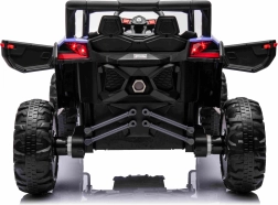 Praktische Details wie öffnende Türen, LED-Lichter vorne und hinten sowie ein übersichtliches Panel mit Ladezustandsanzeige erhöhen den Bedienkomfort. Der Innenraum mit Sitz aus Kunstleder und Sicherheitsgurten bietet Kindern Bequemlichkeit, während das Audiopanel mit MP3/USB/Bluetooth für Lieblingsmusik sorgt.