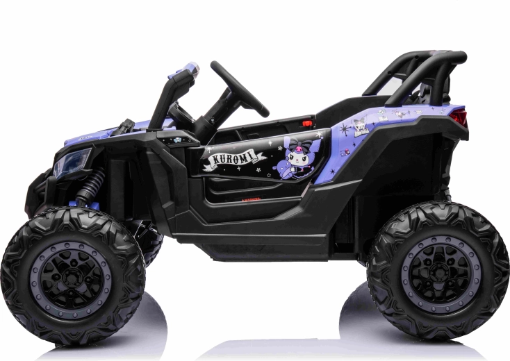 Das Buggy 4x4 KUROMI ist ein großartiges elektrisches Fahrzeug für Kinder, die Abenteuer lieben. Die großen EVA-Räder 30 × 11 cm meistern Pflaster und Garten, die hinteren Stoßdämpfer glätten Unebenheiten und der Soft-Start sorgt für sicheres Anfahren. Dank der 2,4-GHz-Fernbedienung haben Eltern die volle Kontrolle über die Fahrt, inklusive Notstopp.