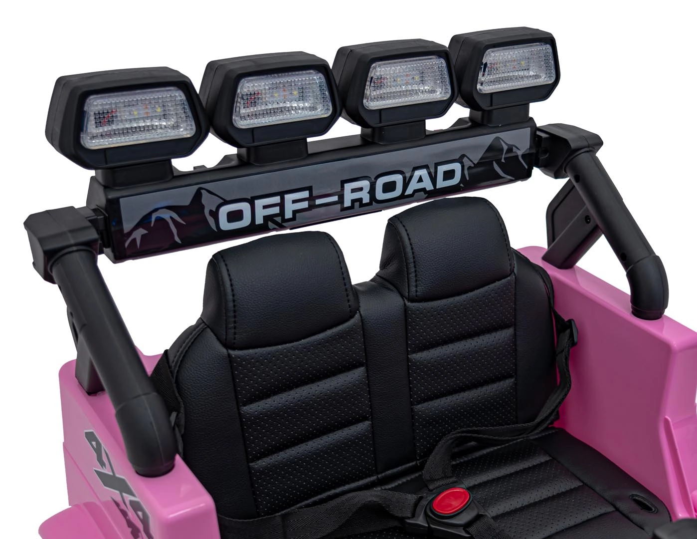 Der Off-Road Climber ist ein robustes Kinderfahrzeug mit Fokus auf Komfort, Sicherheit und Spaß. Zwei leistungsstarke Motoren, hochwertige EVA-Schaumräder und eine hintere Federung gewährleisten eine ruhige Fahrt auch abseits befestigter Wege. Öffnende Türen, realistische LED-Front- und Rücklichter sowie Dachlampen unterstreichen den Offroad-Look.