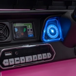 LED-Lichter vorne und hinten, Dachlampen sowie ein Audio-Panel mit USB/MP3/Bluetooth/AUX, Melodien und Hupe am Lenkrad.