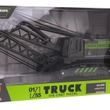 Dieser schwarz‑grüne Kran kombiniert robuste Metallteile mit realistischen Funktionen, die Fantasie und Feinmotorik fördern. Kinder steuern den Ausleger per Hand, senken oder heben den Haken und drehen die Kabine – wie bei einer echten Baumaschine.