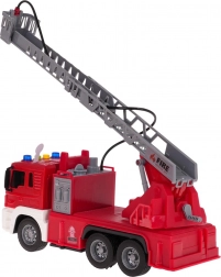 Das Feuerwehrauto ist aus hochwertigstem Kunststoff gefertigt, was ihm Haltbarkeit und leuchtende Farben verleiht. Es sind auch Lichteffekte enthalten, die beim Drücken der Tasten auf der Oberseite der Kabine aufleuchten. Das Spielzeug ist so konzipiert, dass es endlose Stunden Spaß und Abenteuer bietet.