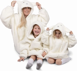 Diese Manteldecke mit Kapuze bietet Kindern perfekten Komfort bei allen Aktivitäten. Ihr innerer Teil wurde aus wärmendem Sherpa-Fleece entworfen, während die äußere Seite ein weiches Material verwendet, das die Kinder beim Spielen, Fernsehen oder Outdoor-Aktivitäten warm hält.
