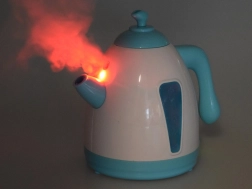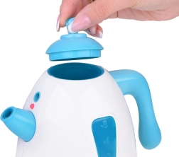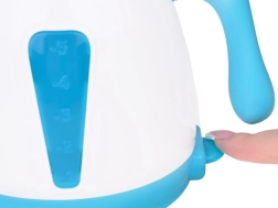 Der Kocher ist mit einem Knopf ausgestattet, der die Simulation des Wasserkochens mit realistischem Klang und einer roten LED-Anzeige startet.