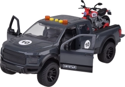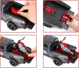 Der hintere Teil des Pickups ist mit einem abnehmbaren Motorrad ausgestattet, was noch mehr interaktive Spielmöglichkeiten bietet.