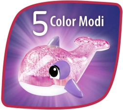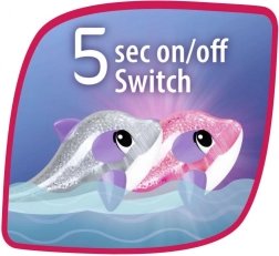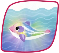Dieser Delfin ist beliebt wegen seines violetten Körpers, der mit einer silbernen Glitzerschicht bedeckt ist. Ein Sensor unter der Schwanzflosse lässt den Delfin bei jeder Berührung in Regenbogenfarben leuchten. Der glitzernde Delfin ist nicht nur zum Spielen geeignet, sondern auch als Badespielzeug, da er auf der Wasseroberfläche schwimmen und unter Wasser leuchten kann.