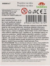 Der Projektor wird mit 3× AG13-Batterien und 2 Projektionsscheiben geliefert, sodass der Spaß direkt nach dem Auspacken beginnen kann. Wählen Sie aus drei Farbvarianten (blau, rosa, türkis). Die Kartenverpackung ist perfekt als kleines Geschenk.
