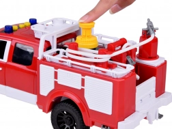 Dank des Gummispritzschlauchs, der an den Wassertank des Fahrzeugs angeschlossen werden kann, können Kinder realistische Feuerlöschszenarien spielen.
