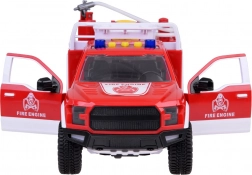 Das Feuerwehrauto ist mit Knöpfen für Toneffekte wie das Öffnen der Türen, die Sirene und die Hupe ausgestattet. Beim Betätigen dieser Knöpfe blinken die Lichter.