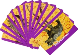 Das Set enthält 12 Karten, die verschiedene Dinosaurierarten vorstellen und wissenswerte Informationen bieten.