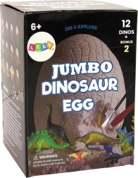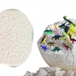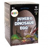 Das Ei misst 10 cm x 10 cm x 15 cm und enthält 12 Dinosaurier.
