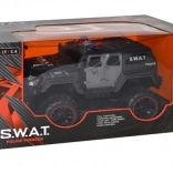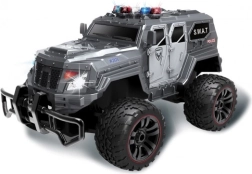 Begib dich auf eine abenteuerliche Mission mit dem RC-Auto S.W.A.T. Police Pioneer. Dieses flinke Modell im Maßstab 1:12 sorgt für Spaß im Garten und auf dem Gehweg und kommt dank seiner Konstruktion auch mit höherem Gras zurecht. Die leuchtenden Blaulichter und Frontscheinwerfer mit einstellbaren Modi verleihen der Fahrt echte Polizei-Action-Atmosphäre.