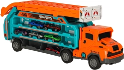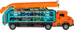 Lastwagen – Autotransporter mit zweispuriger Rennstrecke, orange