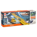 Durch einfaches Aufklappen wird aus dem Lastwagen eine zweispurige Strecke für Duelle der Spielzeugautos – ideal für schnelles und kreatives Spielen.