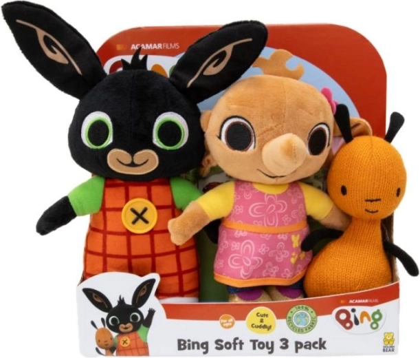 Dieses Set mit drei Plüschfreunden aus der beliebten Serie BING ist ideal für den Alltag – zum Spielen und Kuscheln. Kinder können damit ihre Fantasie, Feinmotorik und die emotionale Bindung zu ihren Lieblingshelden fördern.