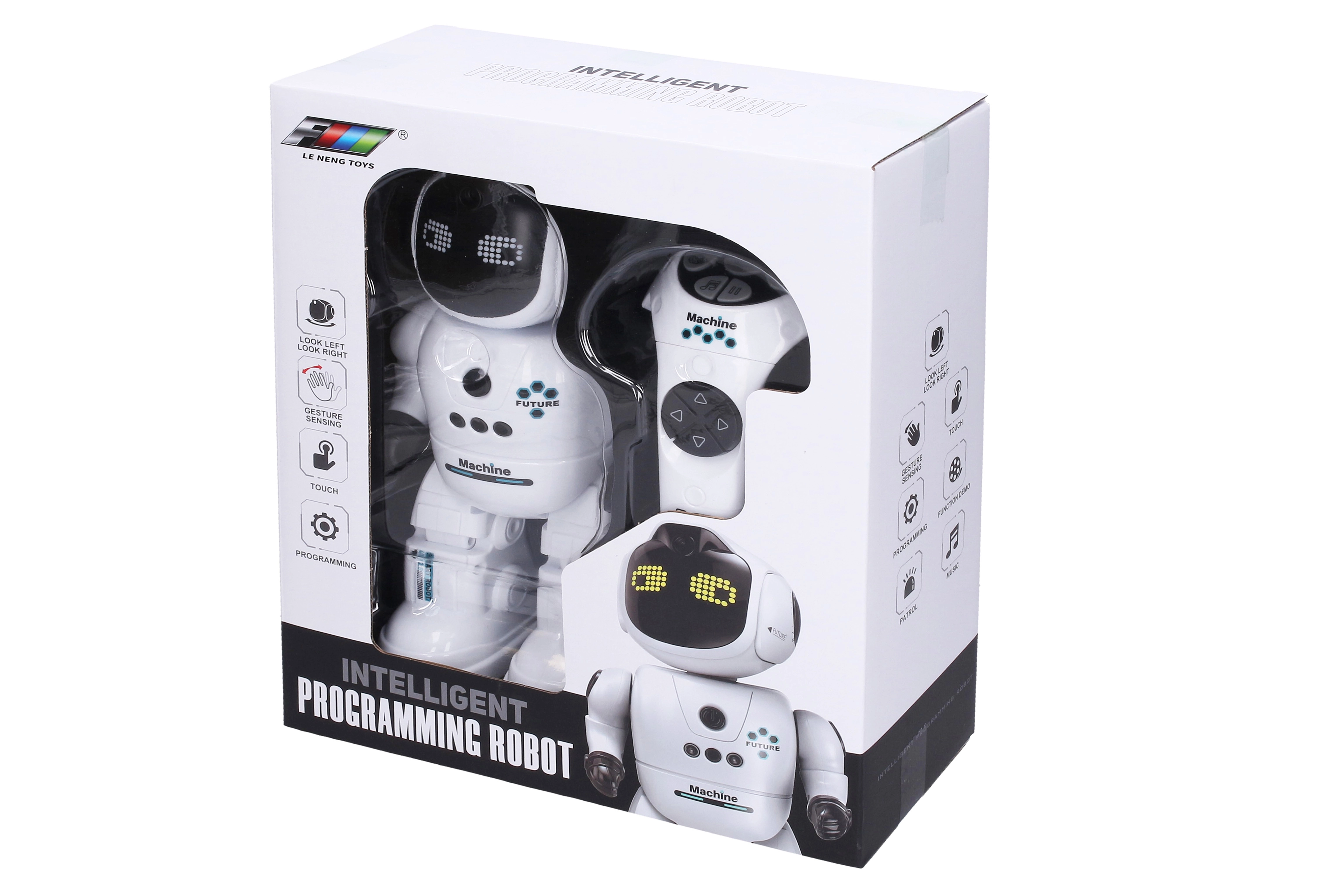 Ein unterhaltsamer und interaktiver RC-Roboter mit einer Höhe von 26 cm bietet Gestensteuerung, Touch-Funktionen und eine Fernbedienung. Genieße Licht- und Soundeffekte, wechselnde Gesichtsausdrücke und die Möglichkeit zur Programmierung von Bewegungen. Inklusive USB-Ladekabel und Li‑Ion-Akku 3,7 V / 500 mAh für den Roboter.