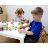 Trocken abwischbarer Stift ermöglicht die mehrfache Verwendung der Karten, was das gemeinsame Spielen mit Geschwistern und Freunden fördert. Das lustige Design mit Illustrationen von Ewa Brzozowska begeistert jedes Kind.