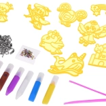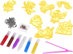 Dieses unterhaltsame Anhänger-Bastelset fördert Kreativität, Feinmotorik und den Sinn für Details. Relief-Schablonen erleichtern das Auftragen der Farbe ohne Überlaufen, und dank der glitzernden Steinchen verleihen Kinder jedem Stück mühelos einen originellen Look. Fertige Anhänger lassen sich einfach an den beiliegenden Metallkettchen befestigen.