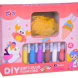 Die weichen Farben werden direkt in die vertieften Linien aufgetragen, sodass sie nicht über die Ränder laufen. Kinder genießen ein einfaches, spaßiges und ordentliches Ausmalen.