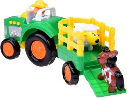 Im Lieferumfang enthalten: Traktor, Anhänger, Bauernfigur, Schaf und Pferd. Stromversorgung: 3 × AG13 (nicht enthalten).