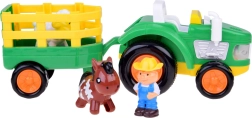 Verwandeln Sie das Kinderzimmer in einen kleinen Bauernhof mit dem farbenfrohen Traktor und dem abnehmbaren Anhänger. Robuste Kunststoffausführung, einfache Handhabung und interaktive Elemente mit Geräuschen und Lichtern fördern Fantasie, das Erzählen von Geschichten und die Feinmotorik.