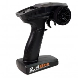 Das Set ist RTR – Ready To Run: Im Lieferumfang sind Auto, 2,4-GHz-Pistolenfernsteuerung, Akku 7,4 V 850 mAh und Ladegerät enthalten. Die Steuerreichweite beträgt etwa 50 Meter, die Fahrzeit rund 15 Minuten und das Laden dauert ungefähr 3 Stunden. Robuste Materialien (Metall- und Kunststoffteile, Elektronik, Gummi) erhöhen die Stoßfestigkeit.