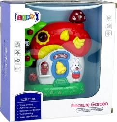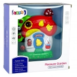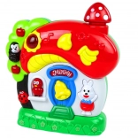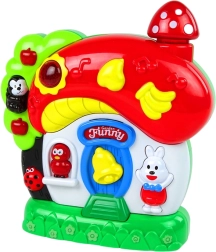 Das interaktive Häuschen ist die perfekte Wahl für das tägliche Spielen und das abendliche Beruhigen. Natursounds beruhigen das Baby und stimmen es auf den Schlaf ein, während die Tiere ihre typischen Laute von sich geben. Durch doppeltes Drücken starten Sie die musikalische Untermalung; für visuelle Reize sorgen ein kleines leuchtendes Fliegenpilzchen und ein Licht auf dem Dach.