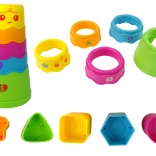 • Einen 5-stöckigen Pyramidenturm mit Öffnung für Kugeln – stapeln Sie vom kleinsten zum größten Element.