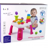 Der Tisch ist stabil und robust, hergestellt aus sicheren, ungiftigen Materialien gemäß Spielzeugnormen. Ideal als erstes interaktives Aktivitätszentrum für Kinder ab 18 Monaten.