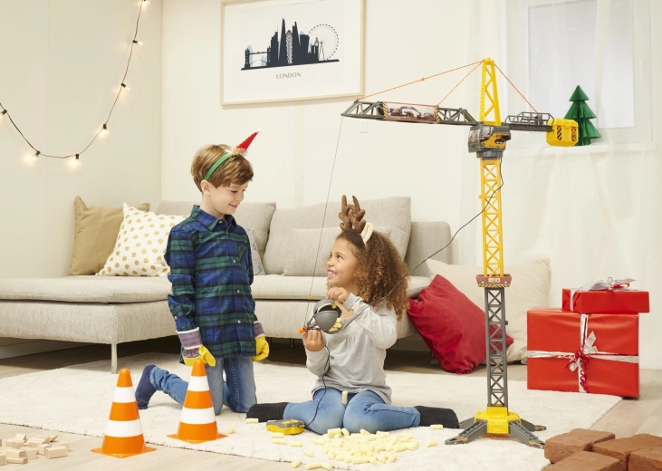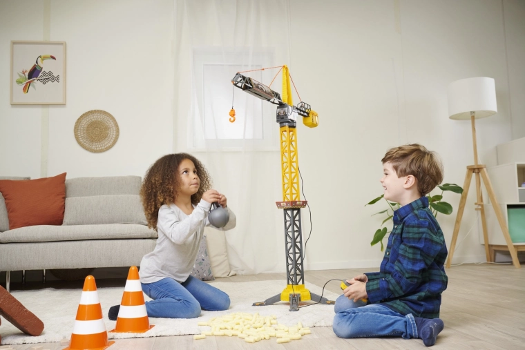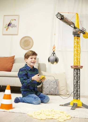 Der VOLVO-Kinderkran von Dickie Toys bringt authentisches Bauen ins Kinderzimmer. Dank 360° drehbarem Ausleger, funktionsfähiger Winde und einer Abrisskugel, die sich öffnen lässt und als Greifer dient, heben und transportieren Kinder mühelos kleine Gegenstände. Die robuste Bauweise und der stabile Standfuß sorgen für sicheres Spielen.