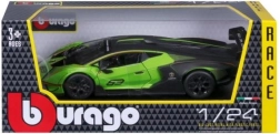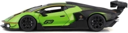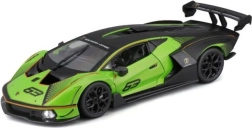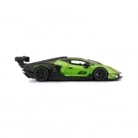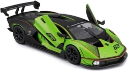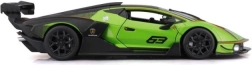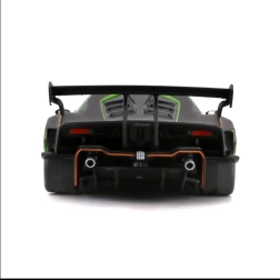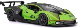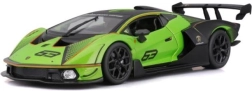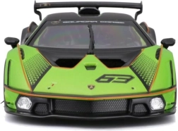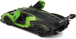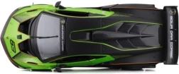 Die markante grüne Farbkombination, der große Heckflügel und sportliche Details spiegeln den Charakter des Lamborghini Essenza SCV12 originalgetreu wider.