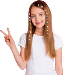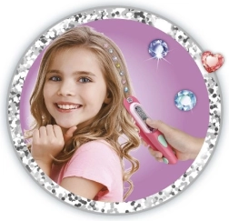 Dieses unterhaltsame Set ermöglicht es Kindern, originelle Haarverzierungen ganz ohne Kleber und ohne Chaos zu gestalten. Die Anwendung ist einfach: Diamant in den oberen Teil des Applikators einsetzen, die Spange in den unteren Teil einlegen, eine feine Haarsträhne anlegen und drücken – der Diamant bleibt mithilfe der Spange befestigt. Einfach, schnell und effektvoll.