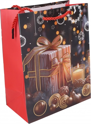 Weihnachtliche Geschenktasche L 30 × 41 × 12 cm. Stilvolles und schnelles Verpacken, robuste Ausführung, 4 Designvarianten. Ideal für größere Geschenke.