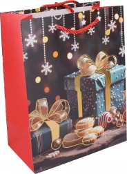 Stilvolle weihnachtliche Geschenktasche in Größe M (26 × 32 × 10 cm) für einfaches und elegantes Verpacken von Geschenken. Bietet robuste Ausführung, praktische Abmessungen und festliches Design.