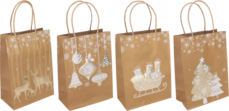 Wählen Sie aus 4 verschiedenen Weihnachtsdesigns und stimmen Sie die Optik des Geschenks genau auf Ihren Geschmack ab. Die Tasche ist wiederverwendbar und umweltfreundlicher als Einweg-Geschenkpapier.