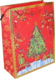 Diese Geschenktasche ist für alle, die ihre Liebsten mit Eleganz und Stil beschenken möchten. Hergestellt aus hochwertigem Papier bietet sie Stabilität und Widerstandsfähigkeit beim Tragen von Geschenken. Das Design der Tasche ist von weihnachtlichen Motiven inspiriert und schafft so eine echte festliche Atmosphäre.