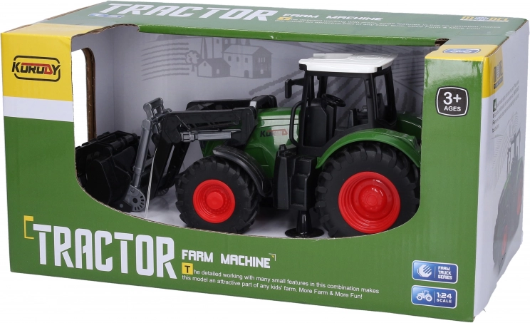 Traktor mit Lader mit einer Größe von 27 cm ist das perfekte Spielzeug für kleine Landwirtschaftsliebhaber. Mit freien Rädern bietet es einfache Handhabung und Spaß in jedem Garten.