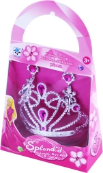 Die rosa dekorativen Steine auf der Krone und den Ohrringen verleihen Verspieltheit und Glanz.