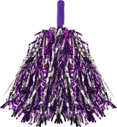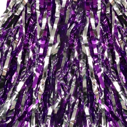 Der Schwungstab ist aus lila und silbernen Bändern gefertigt, die für Glanz und einen auffälligen Look sorgen.