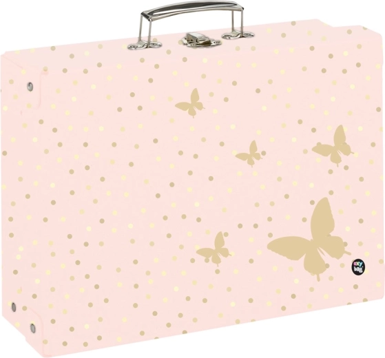 Der OXY GO Kinderlaminokoffer mit Schmetterlingsmotiv ist ideal zur Aufbewahrung von Schulmaterialien oder Kunstbedarf. Er fasst das Format A4 und lässt sich dank des praktischen Griffs einfach transportieren.