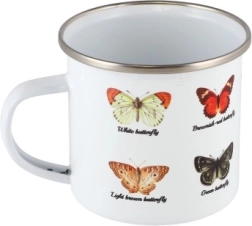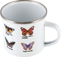 Beleben Sie Ihre Kaffeepausen oder Teestunden mit einem emaillierten Becher mit wunderschönem Schmetterlingsdesign. Dieser Becher vereint Ästhetik und Funktionalität dank seiner hochwertigen emaillierten Oberfläche und seinem Metallrahmen.
