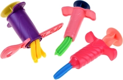 Kolben-Extruder und Pressen erzeugen verschiedene Muster und Streifen. Kinder erzielen mühelos beeindruckende Ergebnisse und trainieren ihre Geschicklichkeit.