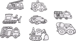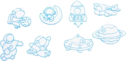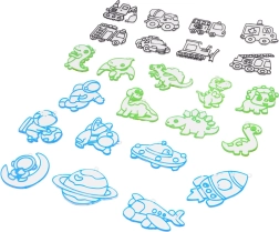 24 Schablonen: Weltraum, Dinosaurier und Autos