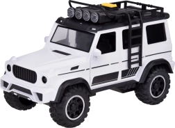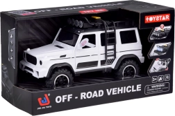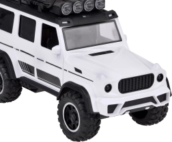 Auf ins Abenteuer mit dem OFF-ROAD Geländewagen, der robuste Bauweise und interaktive Funktionen vereint. Dank leuchtender LED-Lichter und Hup- und Alarmgeräuschen wirkt das Spiel noch realistischer. Öffnende Vordertüren und eine detailreiche Ausführung unterstreichen das attraktive Design.