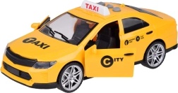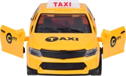 Blinkender TAXI-Schriftzug und Geräusche für Türöffnung/Motorstart, Musik und Alarm unterstützen das realistische Spiel und beschäftigen Kinder stundenlang.